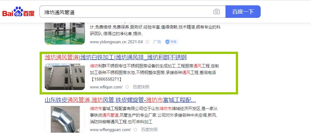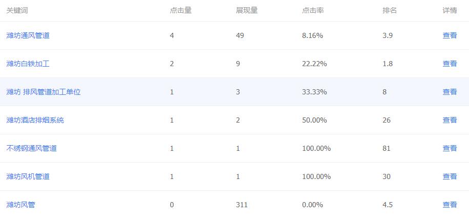 經(jīng)過三四年的網(wǎng)站運行和維護,該公司的相關(guān)關(guān)鍵詞排名理想,關(guān)鍵詞濰坊通風(fēng)管道、濰坊白鐵加工、濰坊不銹鋼廚具、濰坊不銹鋼廚房等關(guān)鍵詞排名穩(wěn)定,展現(xiàn)效果不錯。